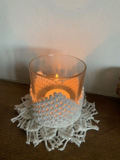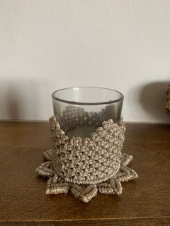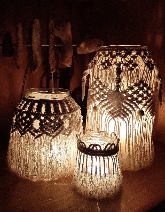 Photophores créés avec des boites d'emballages pour bouteille, perforées et ensuite peintes.