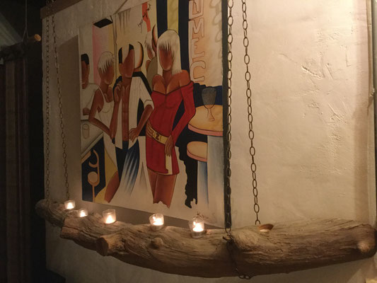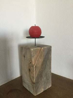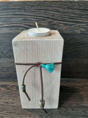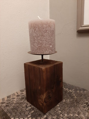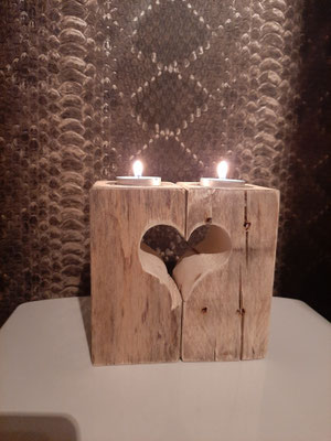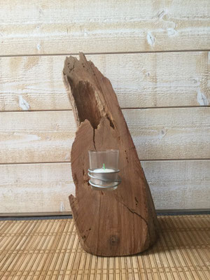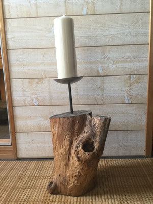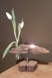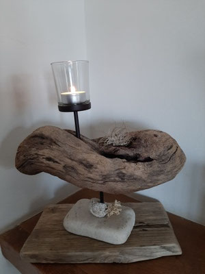Bougeoir créé avec des bois flottés et des galets provenant de Bavière.